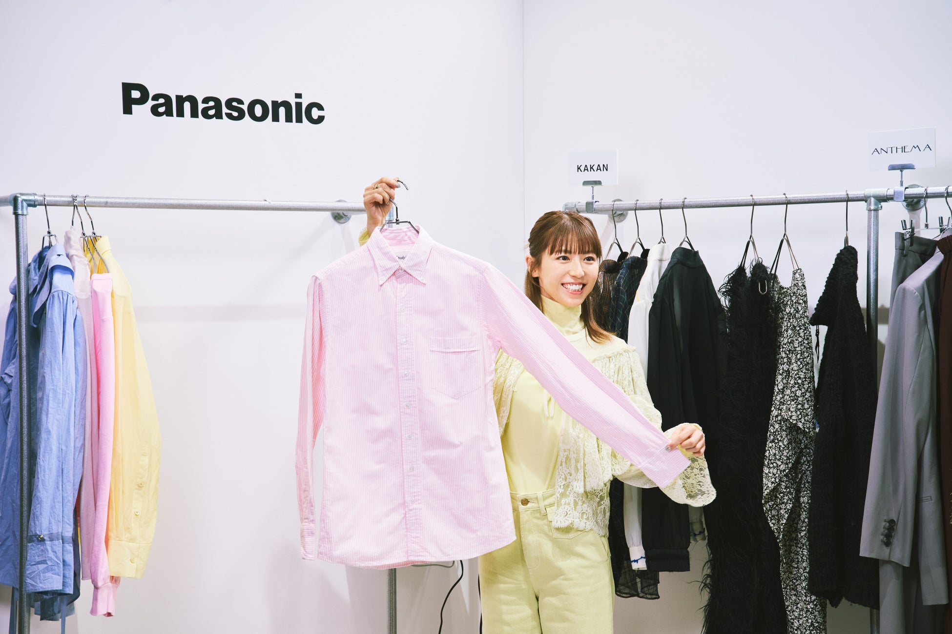 パナソニック 衣類スチーマーが 国内最大級のファッションの祭典 Rakuten Fashion Week TOKYOに協賛。山下健二郎さん、若槻千夏さんなど著名人がハンガーにかけたままシワのばしを体験