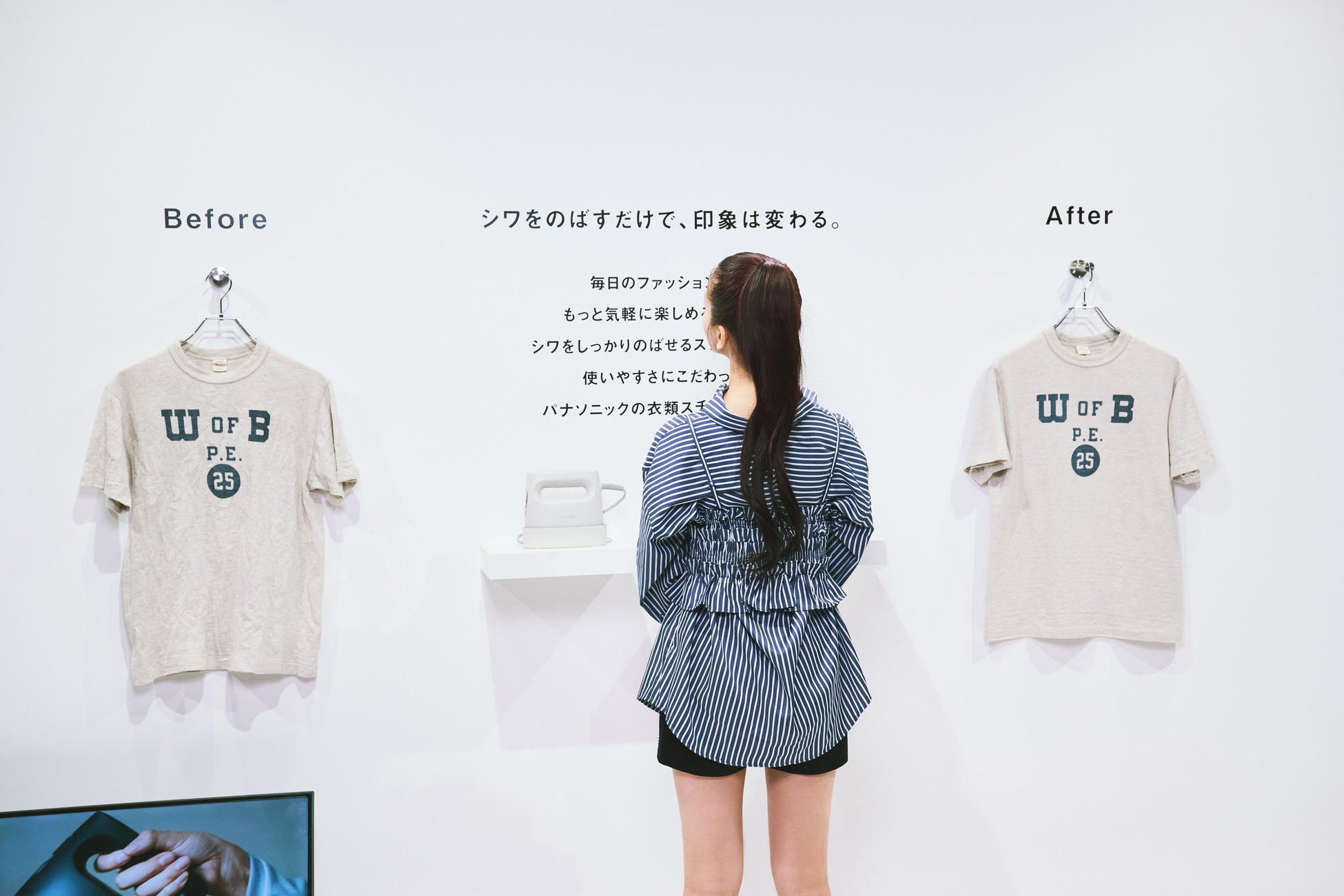 「シワをのばすだけで、印象は変わる」をコンセプトに、ファッションに欠かせないアイテムとして衣類スチーマーを紹介。著名人ゲストやスタイリストなど多くの来場者が製品を使用したシワのばしを体験しました。パナソニックは衣類スチーマーを通じてファッションをより良く見せる「着こなし」を提供してまいります。