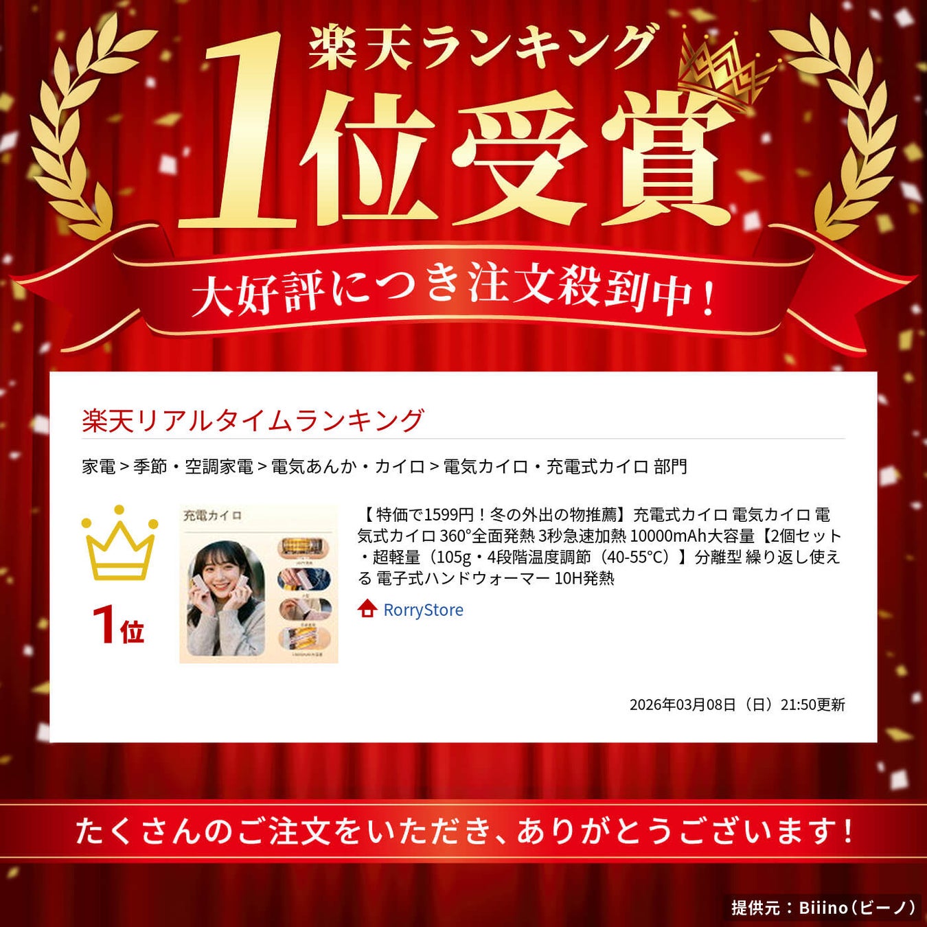 冬の対策-繰り返してカイロ 充電式 ハンドウォーマー 電子式 (2個セット・10000mAh大容量・充電と収納スタンド付)