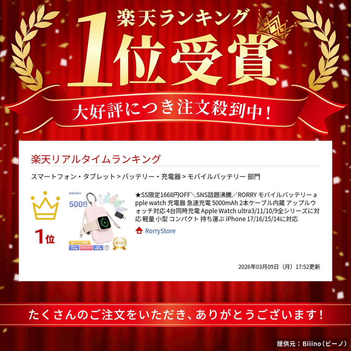 RORRY Apple Watch 充電器 モバイルバッテリー USB-C ケーブル内蔵 (D2-2500)