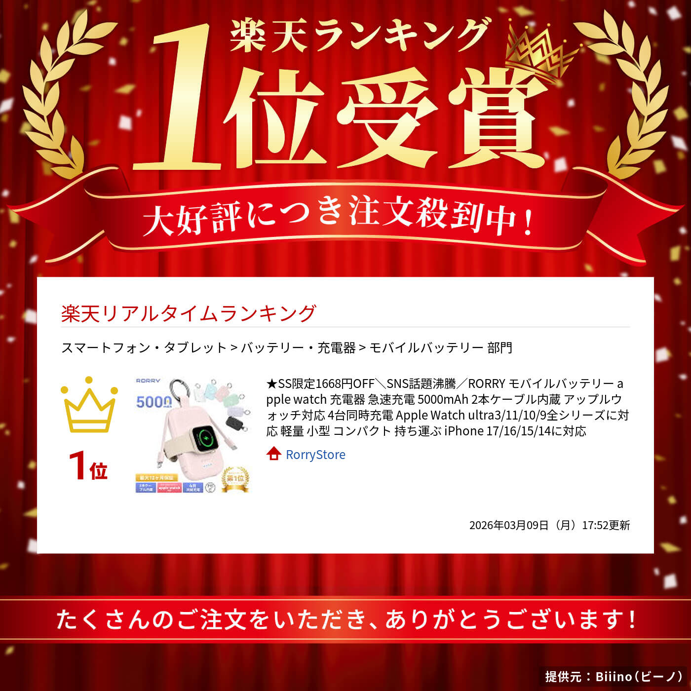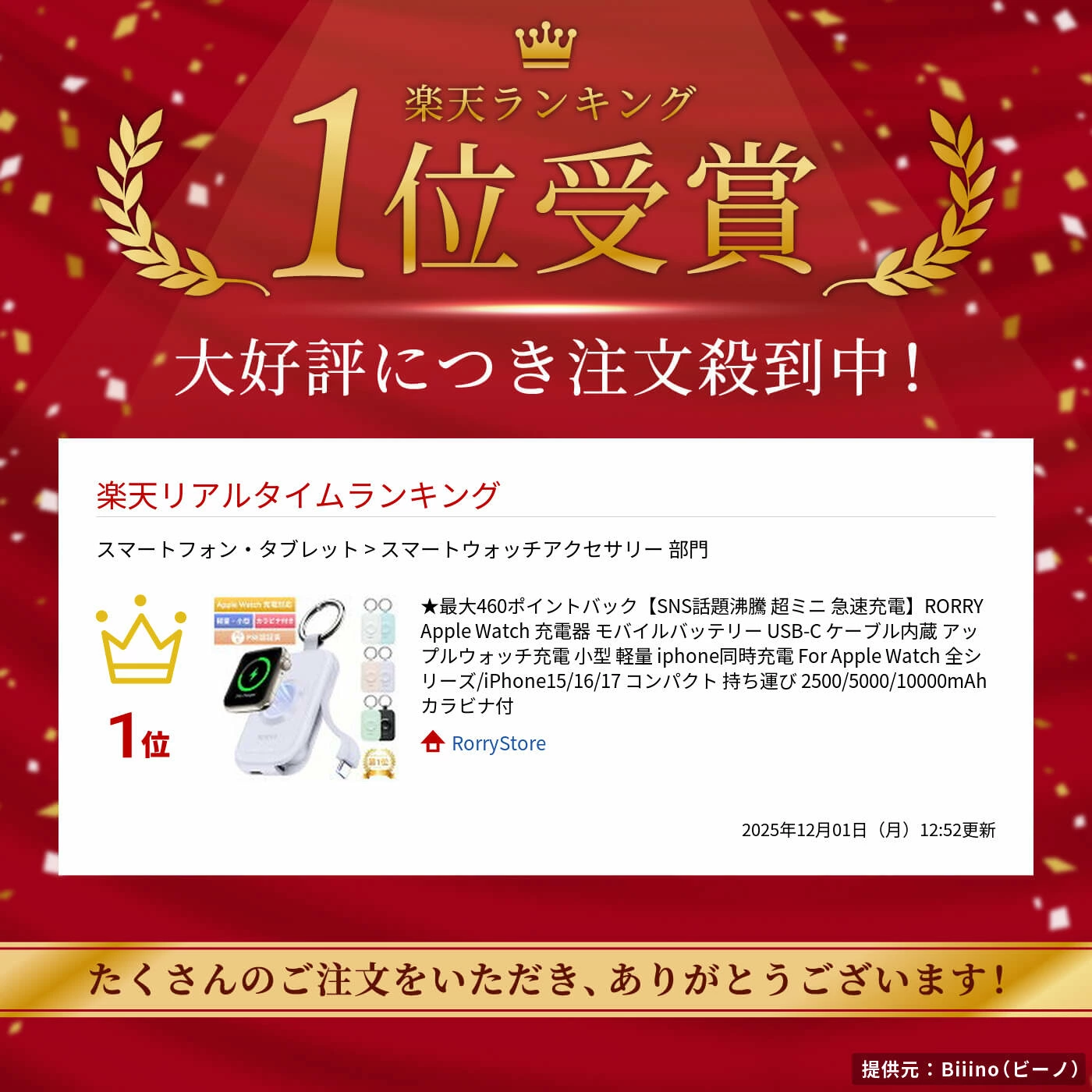 RORRY Apple Watch 充電器 モバイルバッテリー USB-C ケーブル内蔵 (D2-2500)