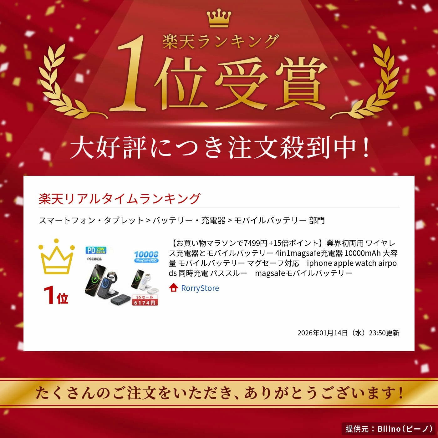 業界初両用 ワイヤレス充電器とモバイルバッテリー両立 4in1magsafe充電器 (M3)