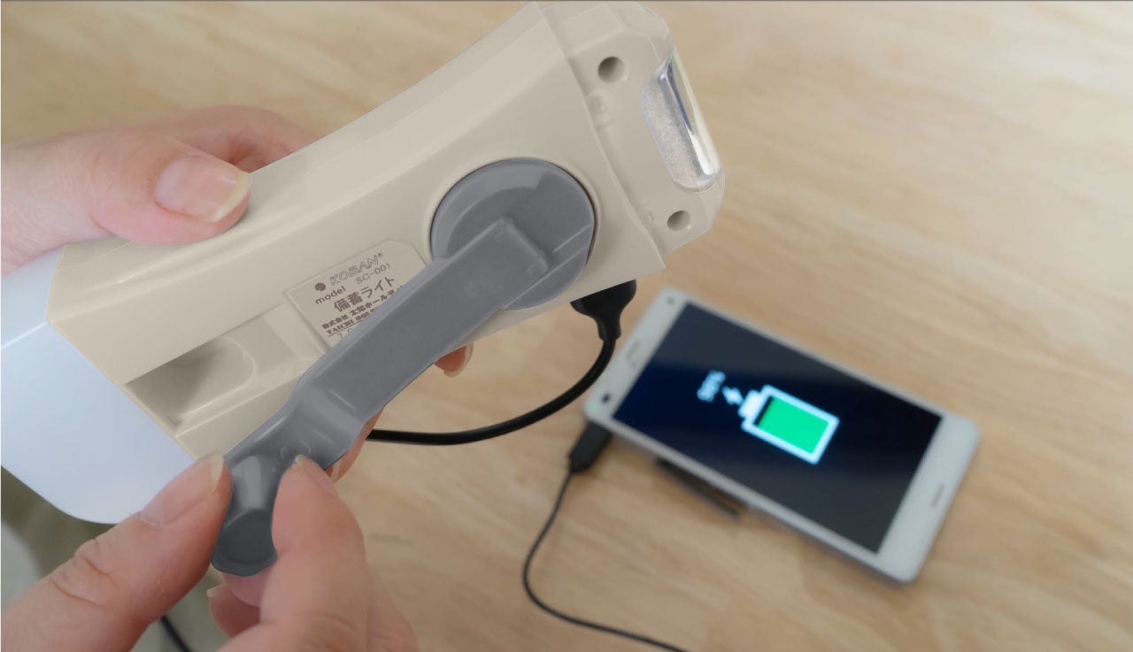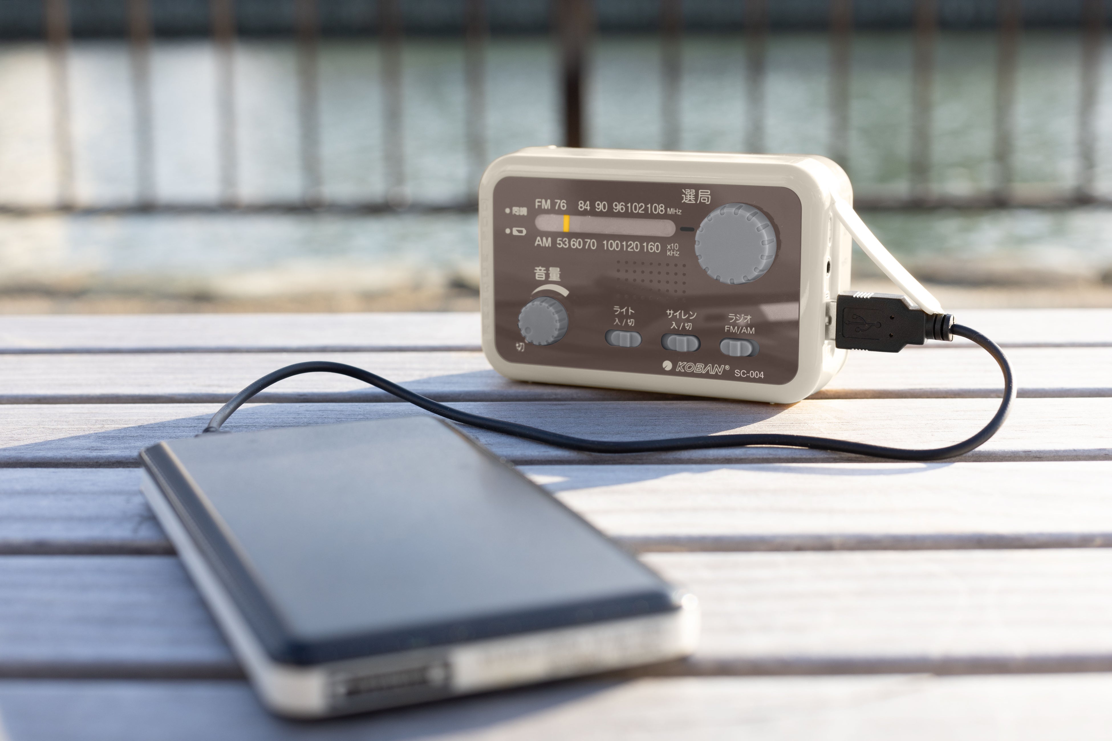 安心の4電源対応 (手回し充電/ACアダプター/乾電池/モバイルバッテリー)