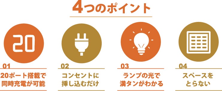 20ポート搭載で、まとめて充電できるシンプルな設計