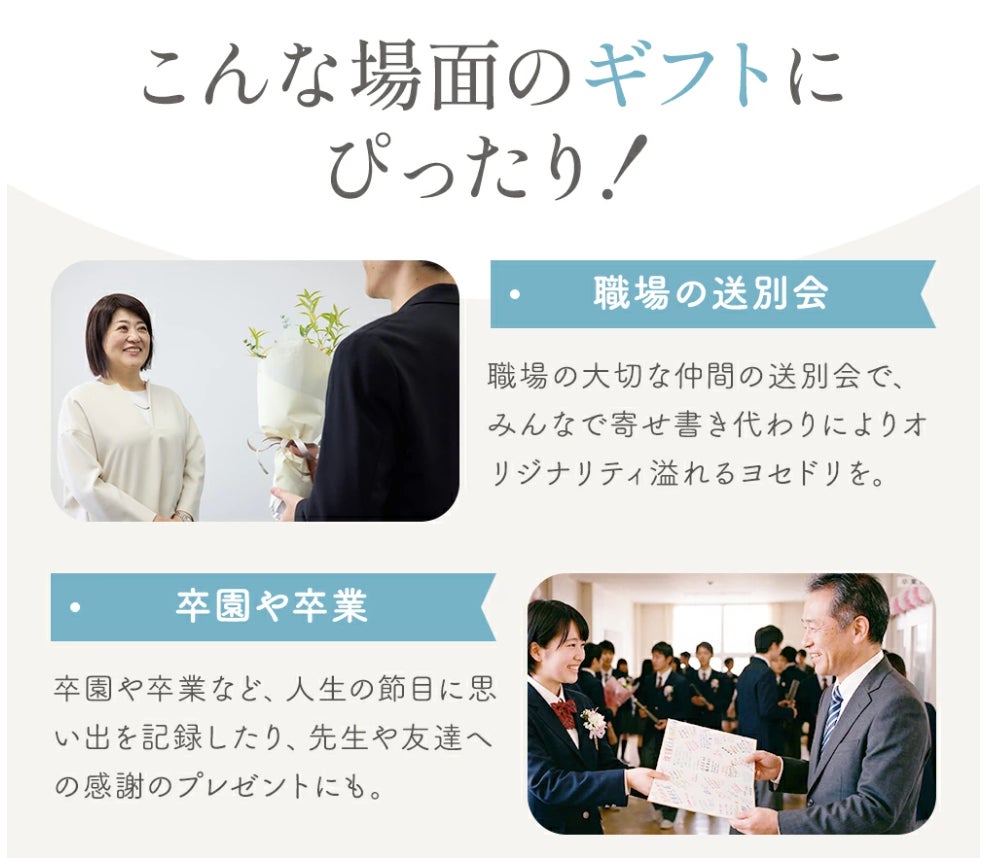 大切な人を笑顔で送り出したい。でも、寄せ書きの取りまとめは大変だし、紙だけでは気持ちを伝えきれない――そんな「送り出す側」のお悩みに応えるために生まれたのが、ヨセドリです。
