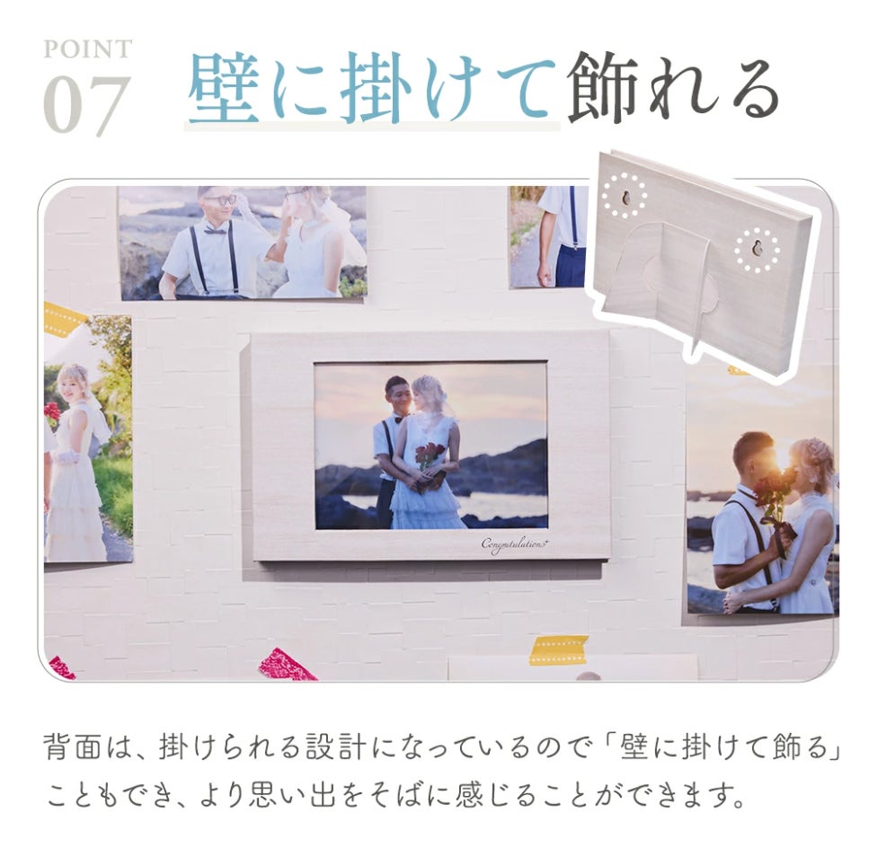 背面は掛けられる設計になっているので「壁に掛けて飾る」こともでき、より思い出をそばに感じることができます。