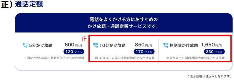 2026年3月24日(火)13:00〜18:30の間、本リリース内に掲載しておりました「通話定額オプション」の価格およびマイル数の記載に一部誤りがございました。