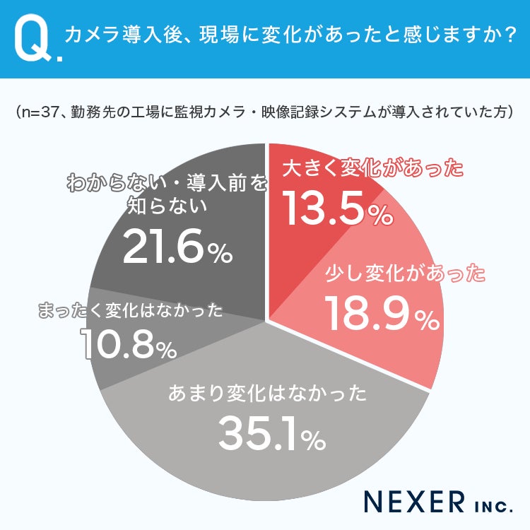 続いて、勤務先の工場に監視カメラ・映像記録システムが導入されていた方に、カメラ導入後に現場に変化があったかどうかを聞いてみました。