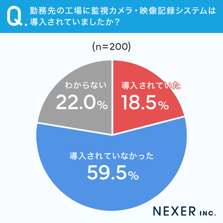 まず、勤務先の工場に監視カメラ・映像記録システムが導入されていたかどうかを聞いてみました。