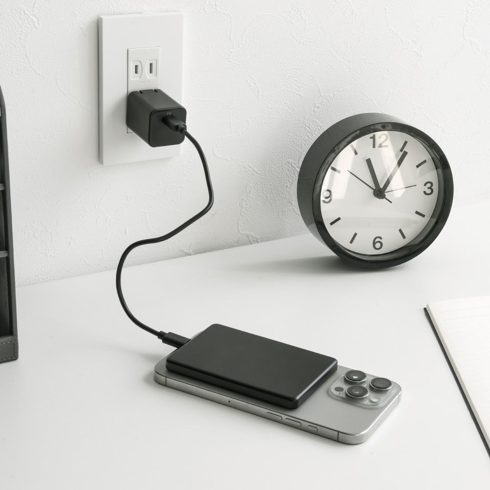 本製品は最大15Wのワイヤレス充電に対応しています。Qi2やMagSafe対応機器ではマグネット吸着によるワイヤレス充電ができ、Qi2やMagSafe非対応のワイヤレス充電対応機器でもワイヤレス充電が可能です。