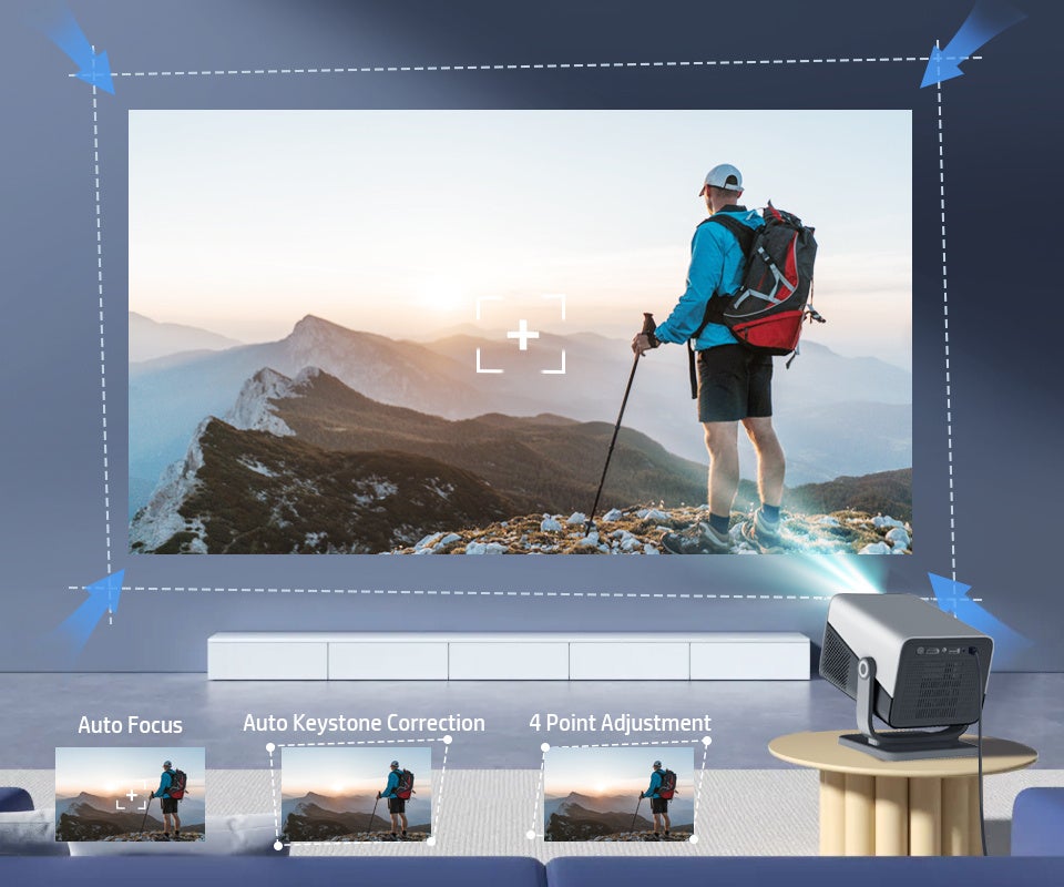オートフォーカス・自動台形補正で、置くだけで最適な映像に調整。