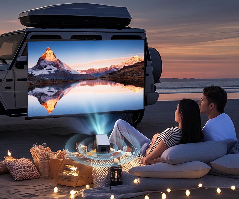軽量・小型(本体780g)ながら、フルHDで最大100インチ投影。USB-C(65W)パワーバンク経由でプロジェクターに給電できるため、屋外や外出先でのエンターテインメントに最適です。