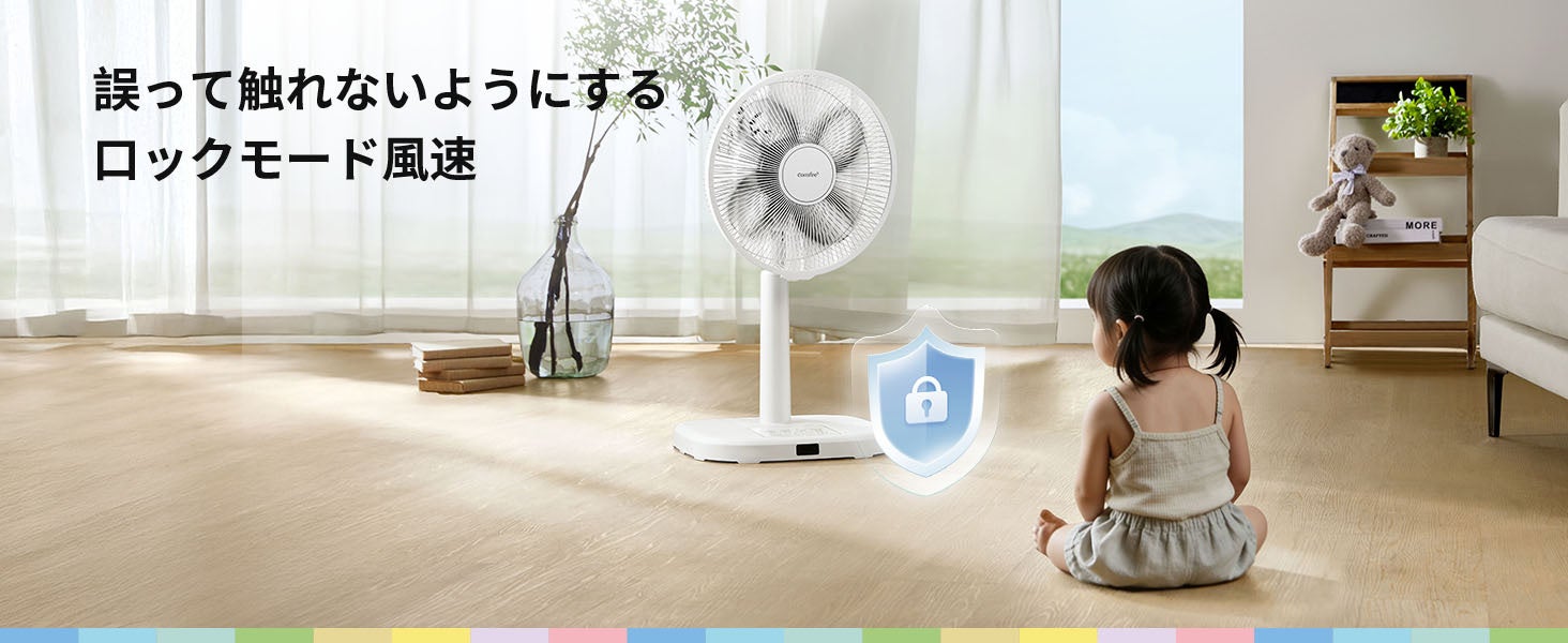 本体にはこども安心ロック機能を搭載しており、誤操作を防ぎ、風量やモードの設定を勝手に変更される心配がありません。ご家庭での使用はもちろん、お子さまがいるリビングや寝室でも安心してお使いいただけます。