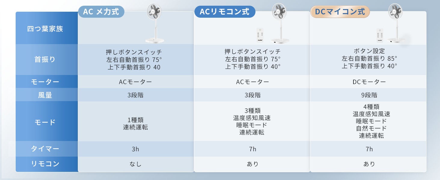なお、今回ご紹介したモデルのほかにも、同シリーズには「メカ式」と「ACリモコン式」の2モデルもご用意しております。用途やお部屋に合わせて、お好みの1台をお選びください。