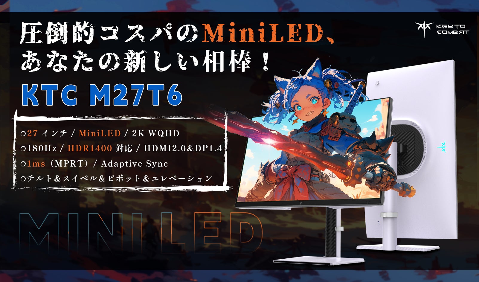 MiniLEDモデル「M27T6」「M27U6」や、有機ELモデル「G27P6S」、さらに高リフレッシュレートモデル「25M1(400Hz)」など、全20モデル以上がセール対象。オフィス向けからプロゲーマー向けまで、KTCが誇る多彩な製品をこの機会にぜひご検体ください。