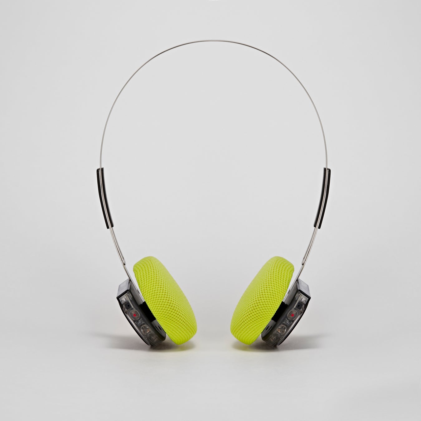 圧倒的な軽さを誇るHp1。ハウジングが「クリア」になり、内部構造が露出。そこに「ライムイエロー」のイヤーパッドが付属します。この組み合わせは、ストリートファッションやテックウェアとの相性が抜群です。
