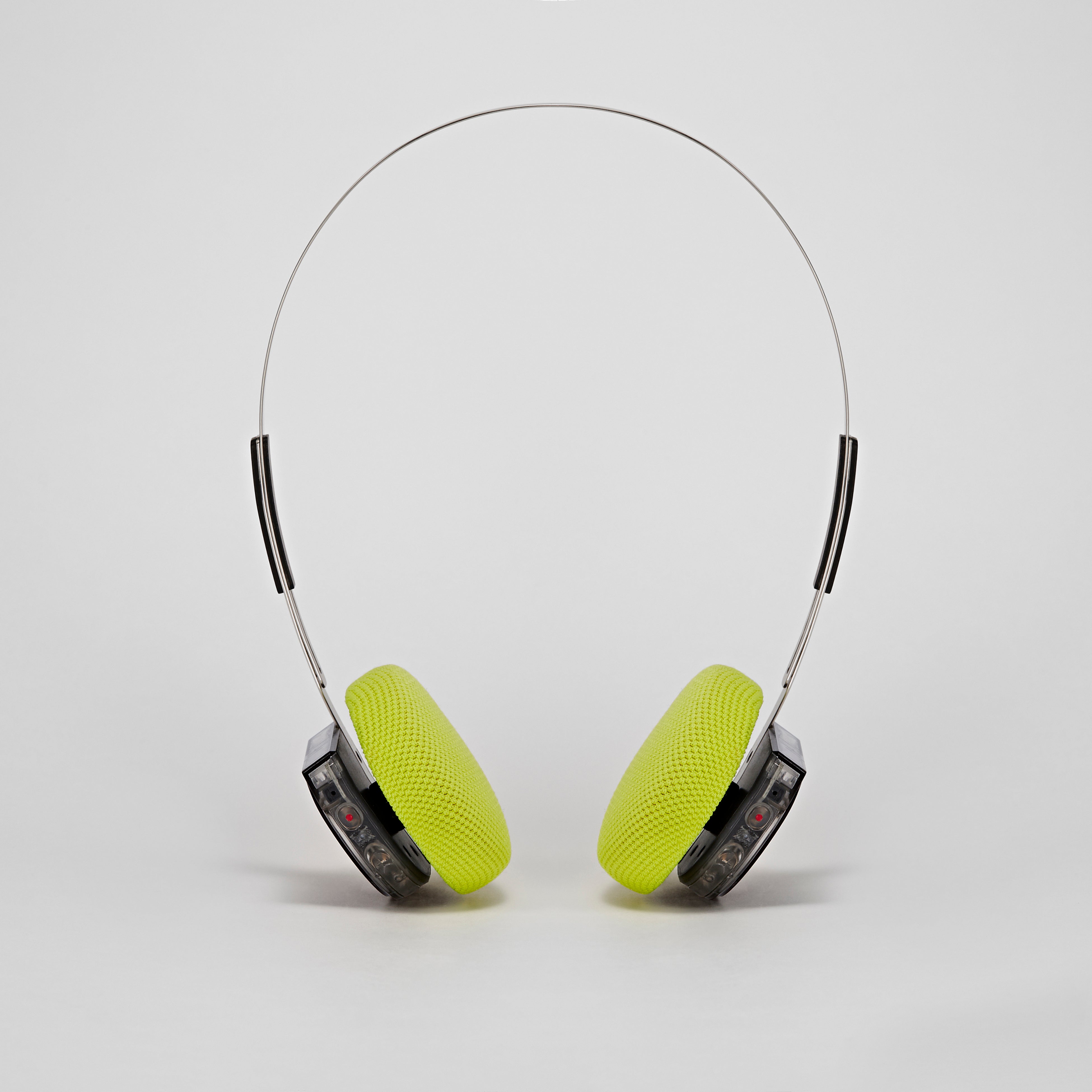 圧倒的な軽さを誇るHp1。ハウジングが「クリア」になり、内部構造が露出。そこに「ライムイエロー」のイヤーパッドが付属します。この組み合わせは、ストリートファッションやテックウェアとの相性が抜群です。