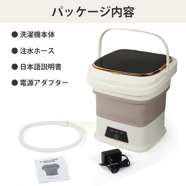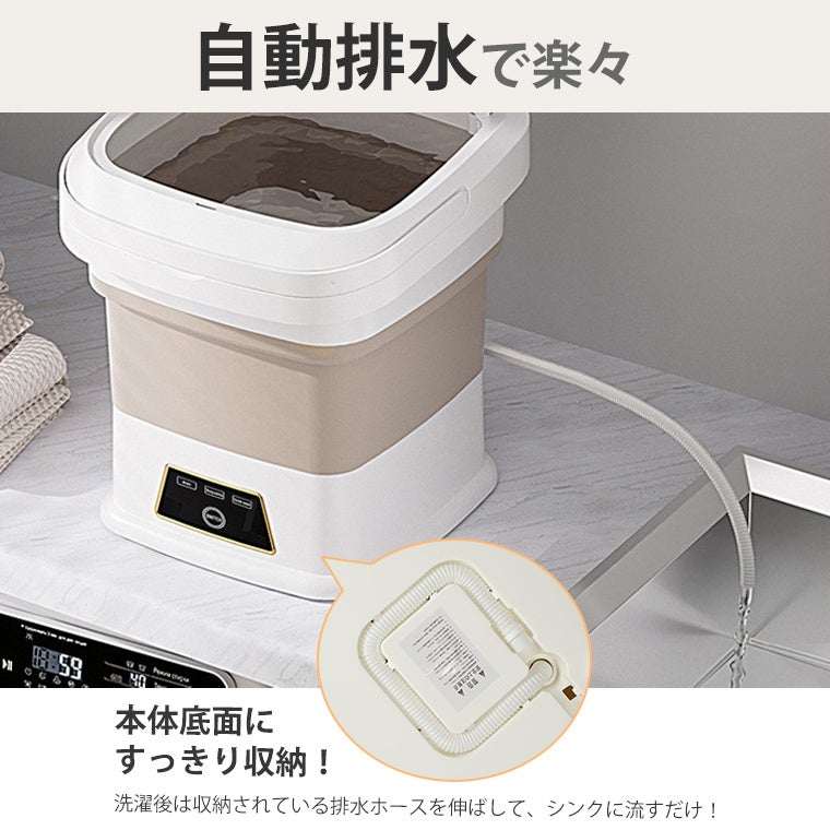 コンパクトに折りたたんで持ち運べるため、ホテルやキャンプなどでも手軽に洗濯可能。長期滞在やアウトドアでも活躍します。