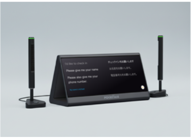 両面ディスプレイを搭載し、互いの言葉を瞬時に翻訳して表示することで、自然な対話がそのまま成立する体験を可能にします。さらに、高感度マイクによる精緻な音声認識や、人の存在を感知して自動で画面が起動するスマートセンサー、会話履歴をワンタッチで消去できるプライバシー設計など、公共空間でも直感的かつ安心して利用できるように設計されています。
