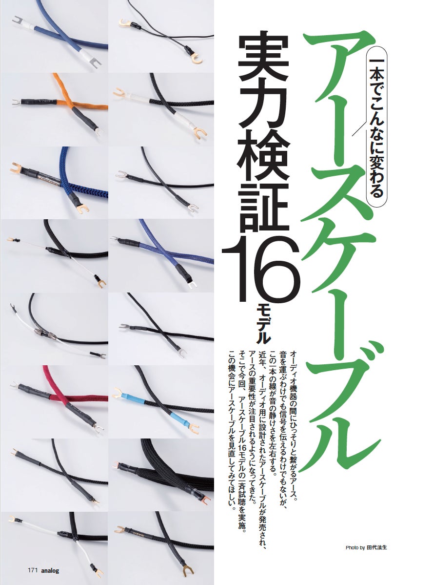 レコード再生において必須のアイテムであるアースケーブル。これまでは「単に接続しておけばよい」と思われていた地味な存在でした。しかし仮想アースなるものの浸透でオーディオグレードモデルが次々に登場し、アースケーブルがレコード再生においても音質に大きく関わることに注目が集まっています。そこで今回は、16モデルを一挙に試聴。ハムノイズを防ぐのみならず、一本でこんなに変わる! と感動もののアースケーブルの世界をお楽しみください。(試聴・執筆 炭山アキラ)