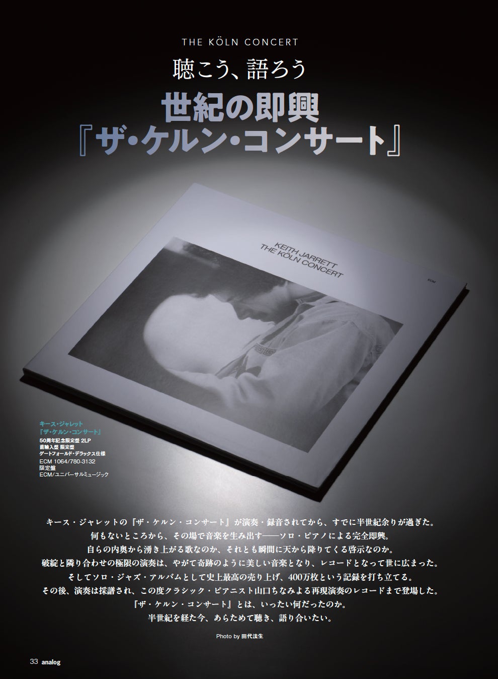 アナログオーディオに特化した注目のアワード「アナロググランプリ2026」、授賞結果発表と授賞モデルの試聴レポートを始め、キース・ジャレットの傑作『ザ・ケルン・コンサート』とクラシック・ピアニストの山口ちなみによる再現作品を聴くオーディオシステムプランの紹介、アースケーブルの実力検証レポートなど、盛り沢山の内容をぜひお手に取ってご覧ください。