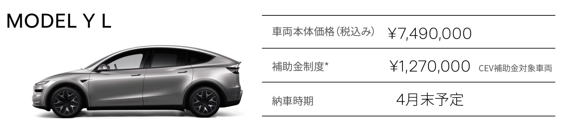 ※テスラの新車を購入すると、国のCEV補助金が適用されます。また、各自治体独自に補助金を設定している場合があります。
