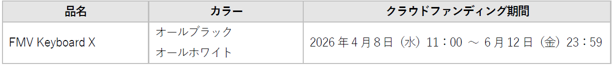 詳細は「FMV Keyboard X」クラウドファンディングページをご確認ください。展示情報はサイト内「活動報告」にて随時更新いたします。