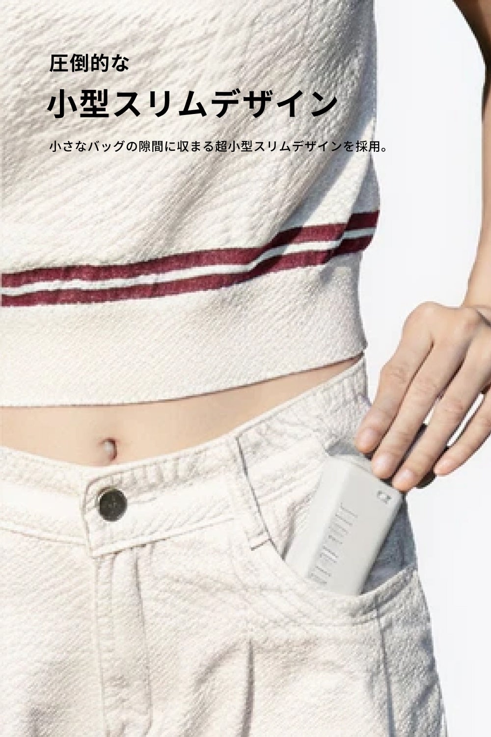 小さなバッグの隙間やポケットに収まる、超小型スリムデザインを採用。