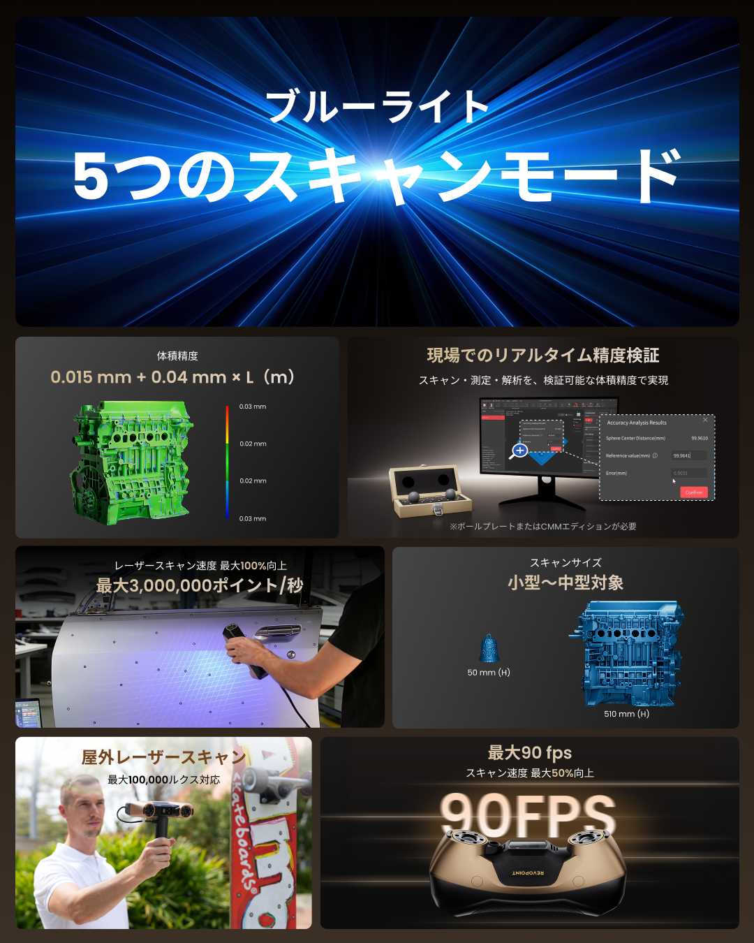 • 最大90FPSの高速スキャン
