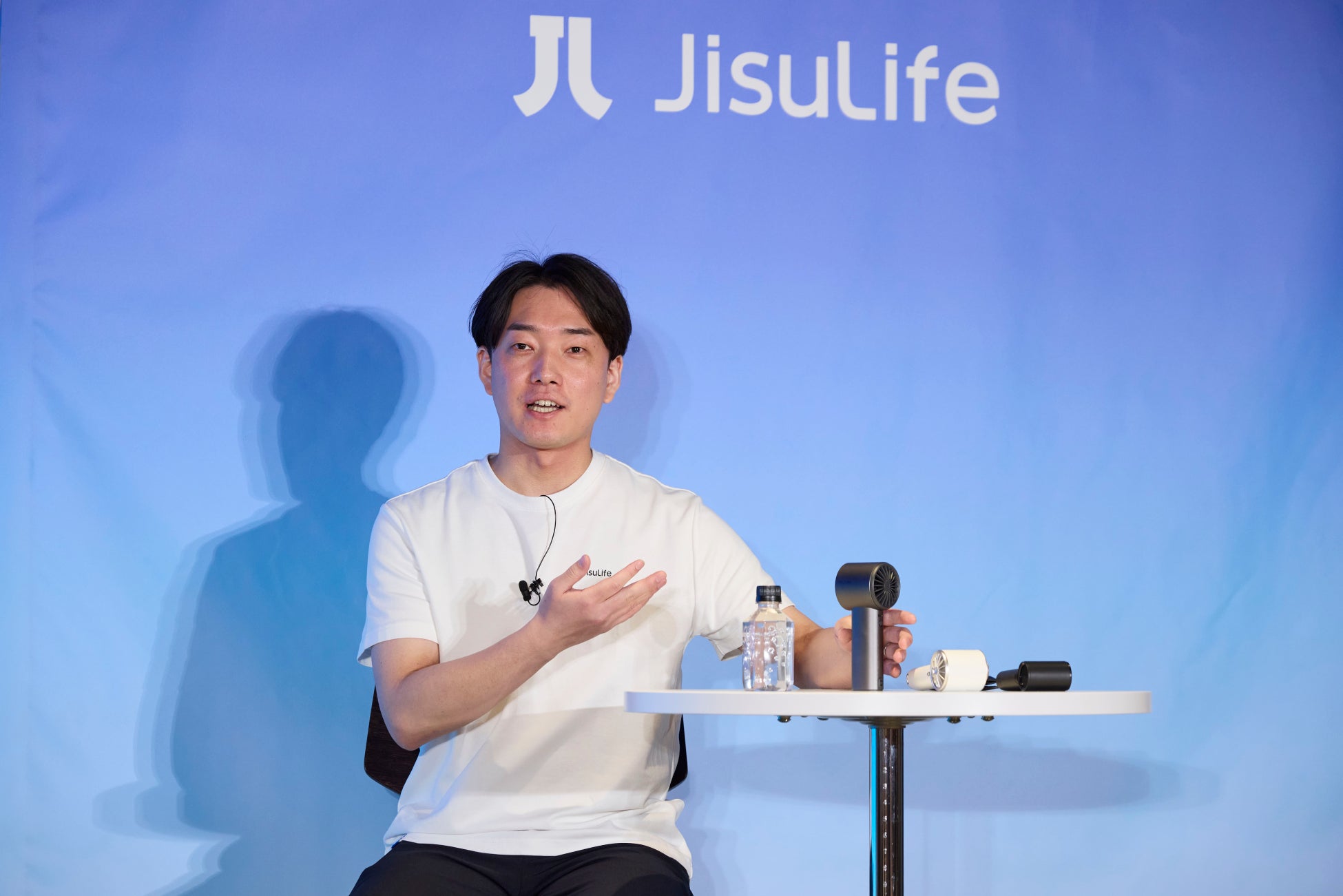 米国・東南アジア・中国を中心にポータブルファンで世界No.1*のシェアを誇るJisuLifeグループの日本法人、JISULIFE TECHNOLOGY株式会社(本社:東京都中央区、代表取締役:清原 健司)は、2026年4月8日(水)、日本法人設立にともなう初の製品発表会を開催しました。発表では日本市場への本格参入の背景や今後の展望について代表の清原から発表があった他、プレミアムシリーズを含む新商品6モデルが発表されました。その後、気象予報士・森田正光氏とのトークセッションも実施され、日本の多様化する暑さへの対策としてポータブルファンの効果や正しい使い方なども話し合われました。森田氏は、JisuLife製品を推奨できるポイントとして「100段階の細かい風量設定」や「最大9m/sの風速」を挙げ、実際の使用シーンとして「冷房で部屋全体を冷やすだけでなく、個々人での暑さ対策が重要」と述べました。