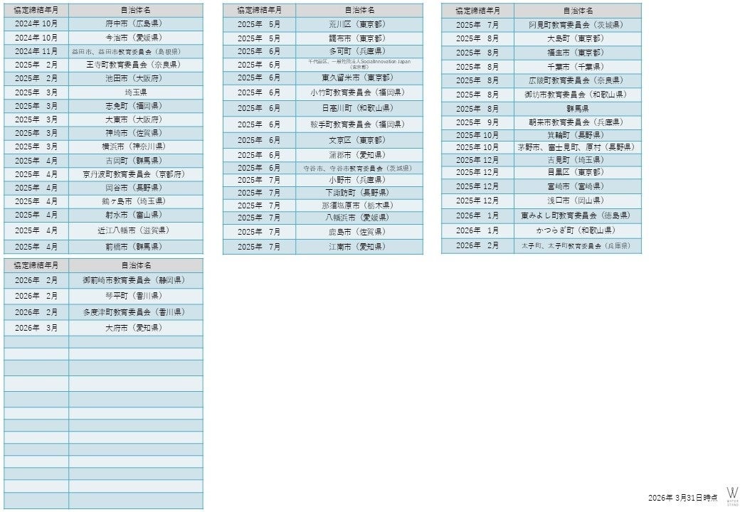 浄水型ウォーターサーバーのレンタル事業を行うウォータースタンド株式会社(本社:埼玉県さいたま市、代表取締役社長:本多 均、以下当社)は、2026年3月26日(木)に和歌山県紀の川市教育委員会(教育長: 鍋田 泰延)と「熱中症予防の推進に関する協定」を締結したことをお知らせいたします。