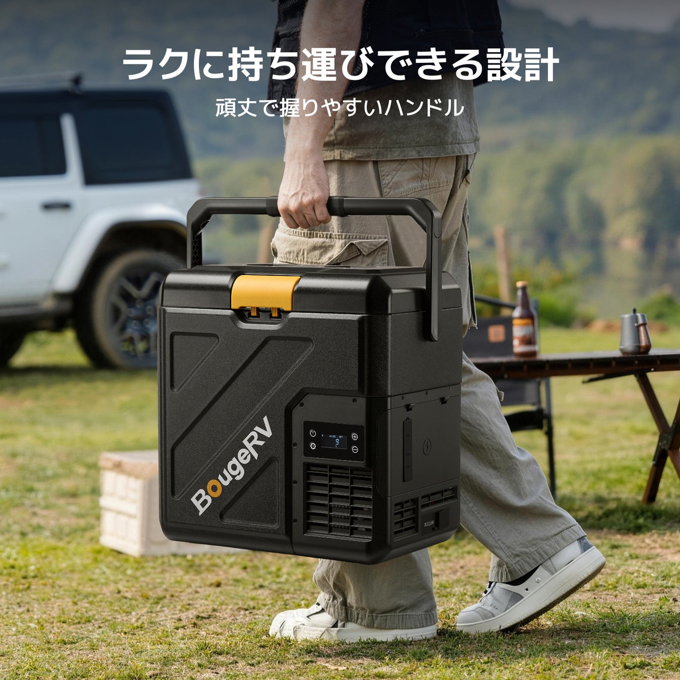 従来品では「車内が高温になると冷却効率が低下し、温度が下がりきらない」という課題がありました。BougeRVはこの課題を真摯に受け止め、コンプレッサー技術を根本から強化。最新モデルでは、周囲温度32℃の過酷な環境下でも、マイナス18℃まで一気に、かつ安定して冷却することが可能になりました。
