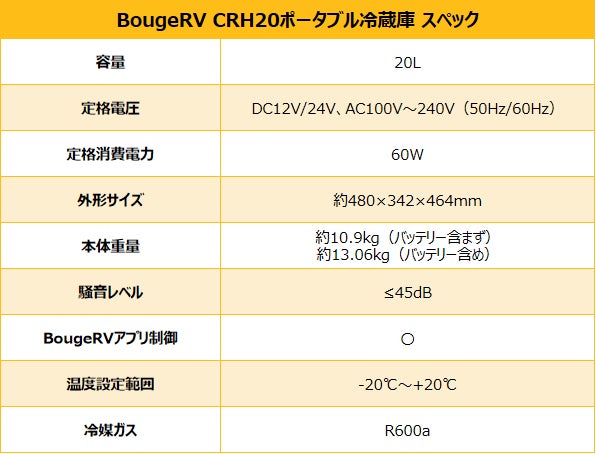アウトドア生活ソリューションを提供するISSYZONE JAPAN株式会社(本社:東京都台東区、取締役社長:王冲衡、日本語読み:イシーゾン)が展開するアウトドア家電ブランド、BougeRV(日本語読み:ボージアールブィ)は、2026年4月9日(木)に、新商品「BougeRV CRH20ポータブル冷蔵庫」を発売することになりました。