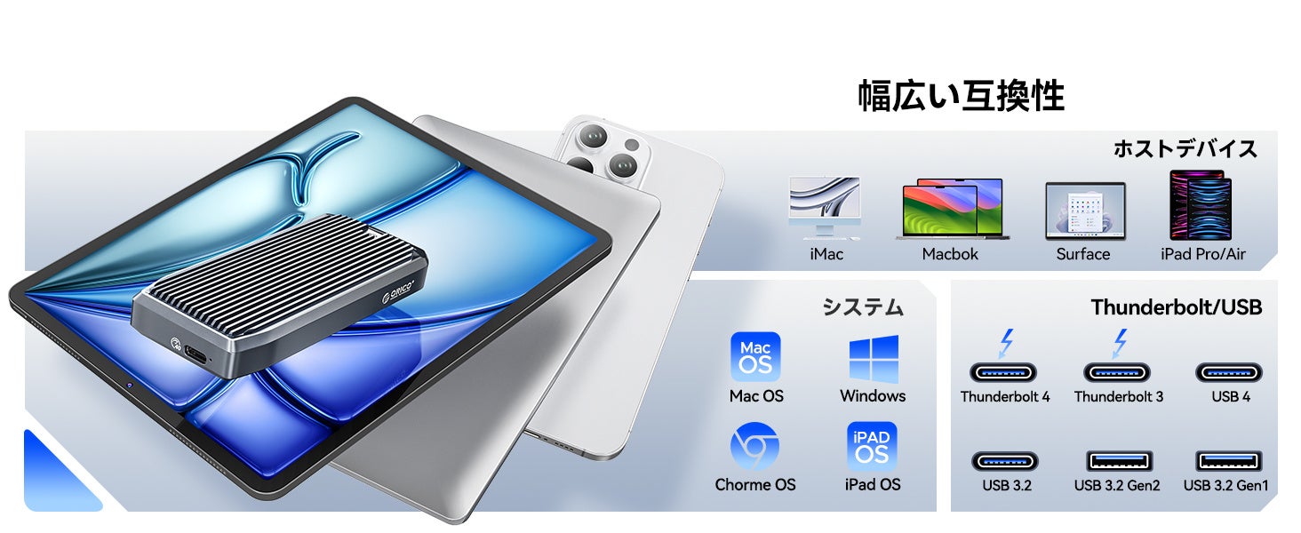 👉 ORICO USB4 40Gbps SSDケース(M2V01-C4)をAmazonで見る