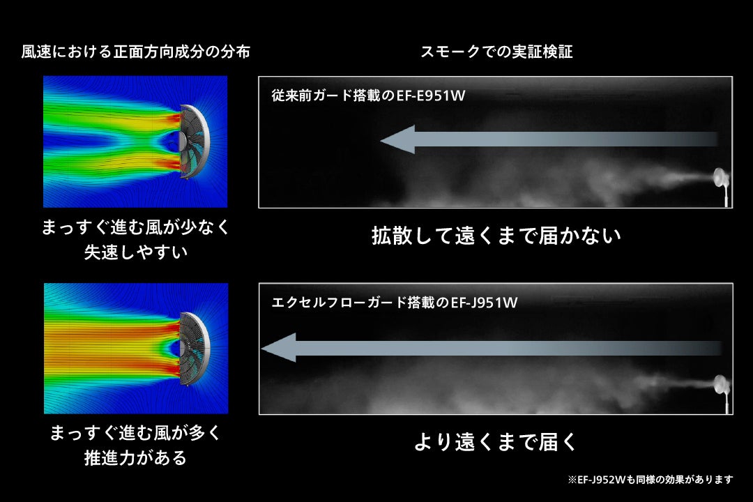 ※1 当社従来品EF-E951/EF-E952と比較。※2 気流を整える回転しない羽根のこと