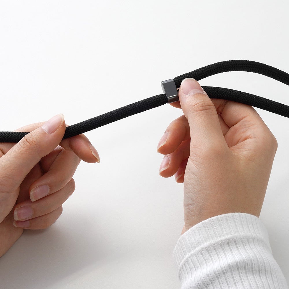 手首に通して使用することで、スマートフォン操作時やハンディファン使用時の落下リスクを軽減。