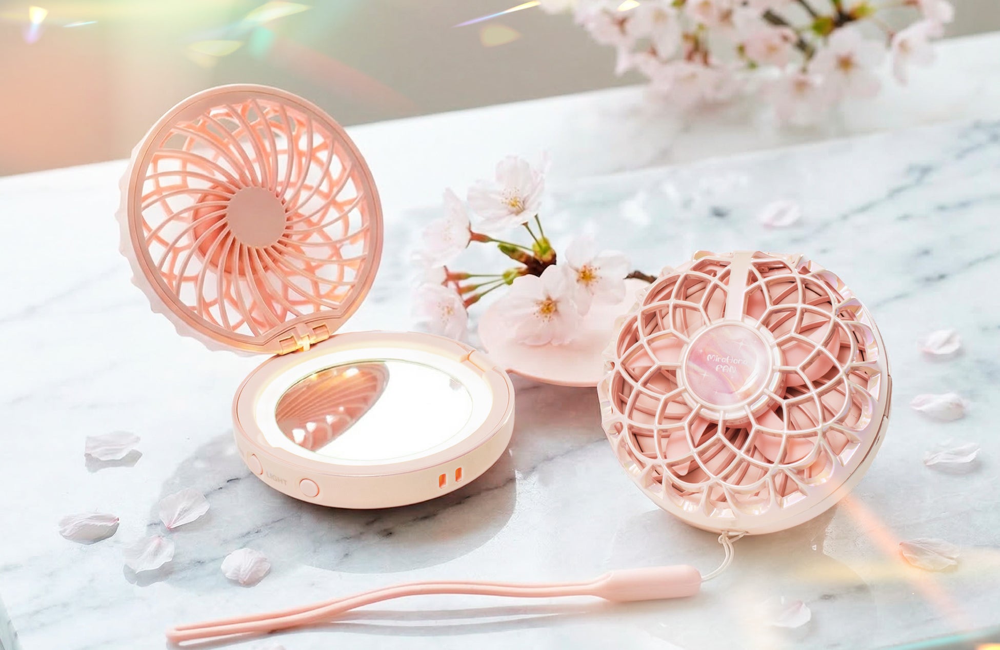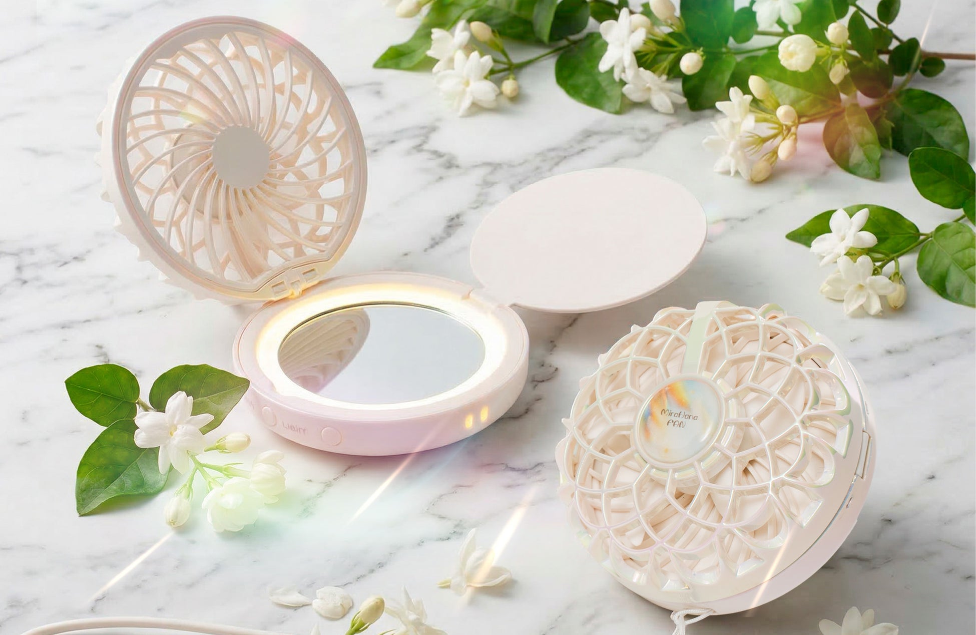 「ミラハナファン」は、そんな季節の変化に着目して生まれたアイテムです。涼しさとお直しのしやすさを、外出先でも支えます。