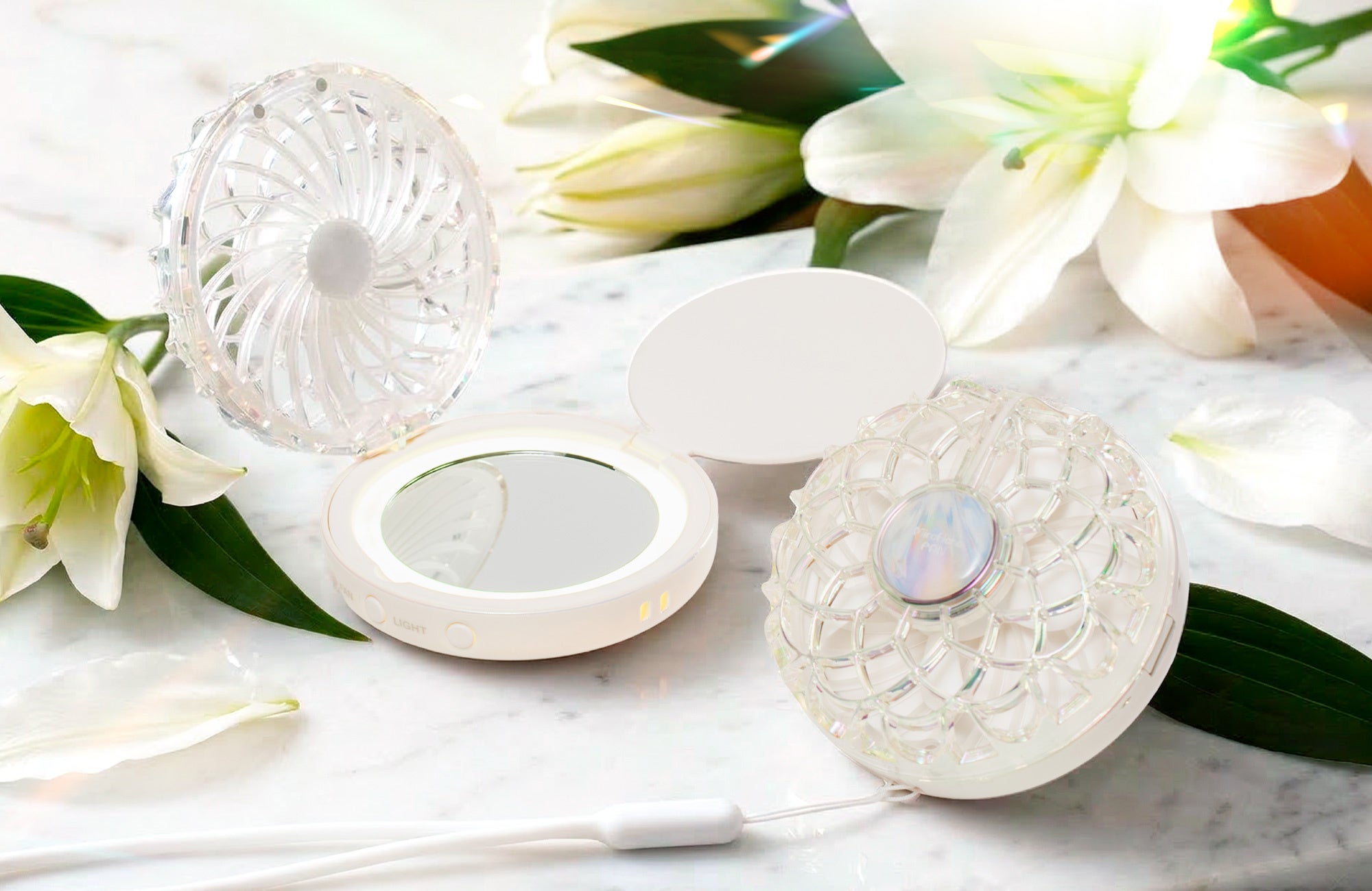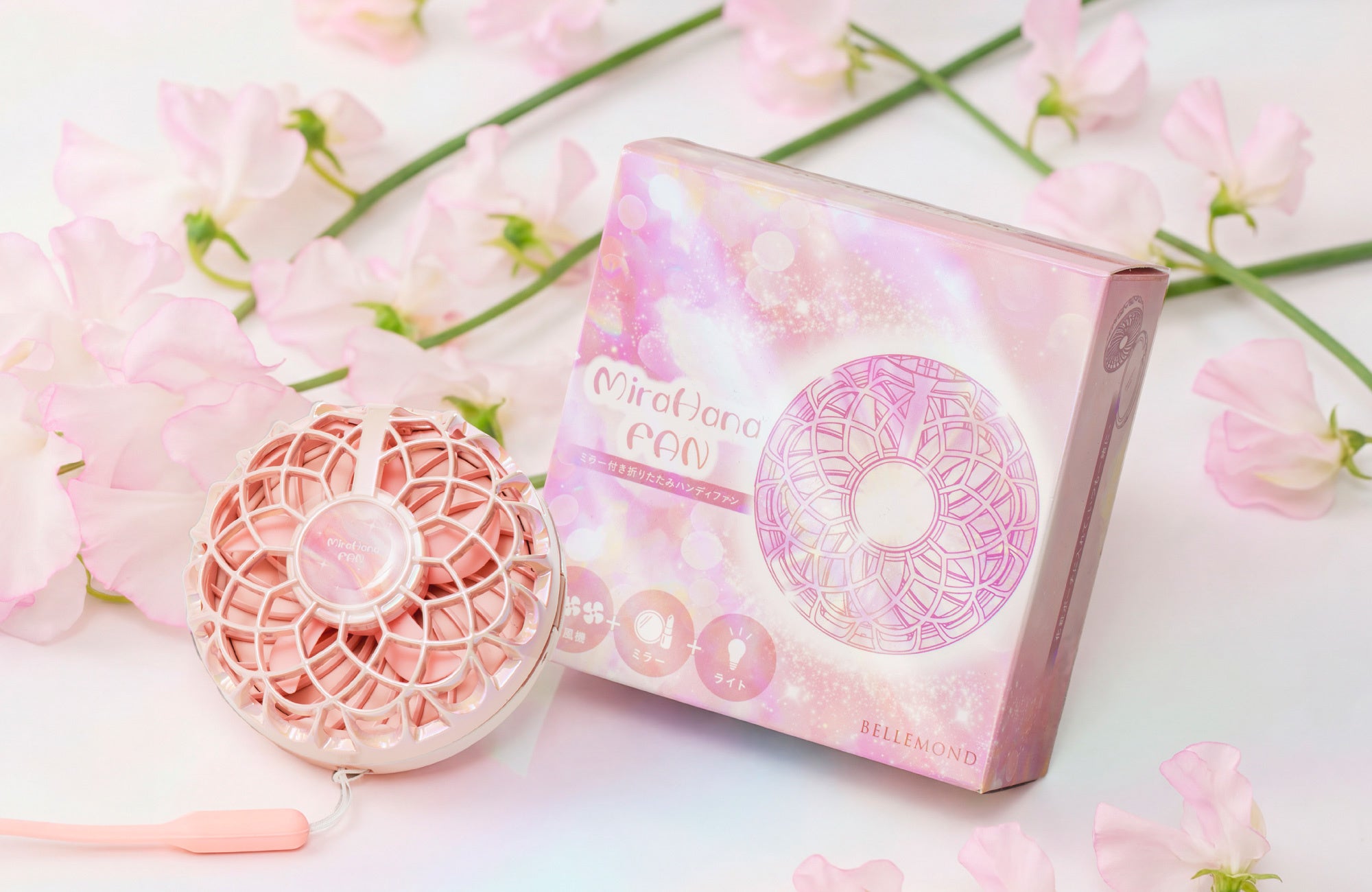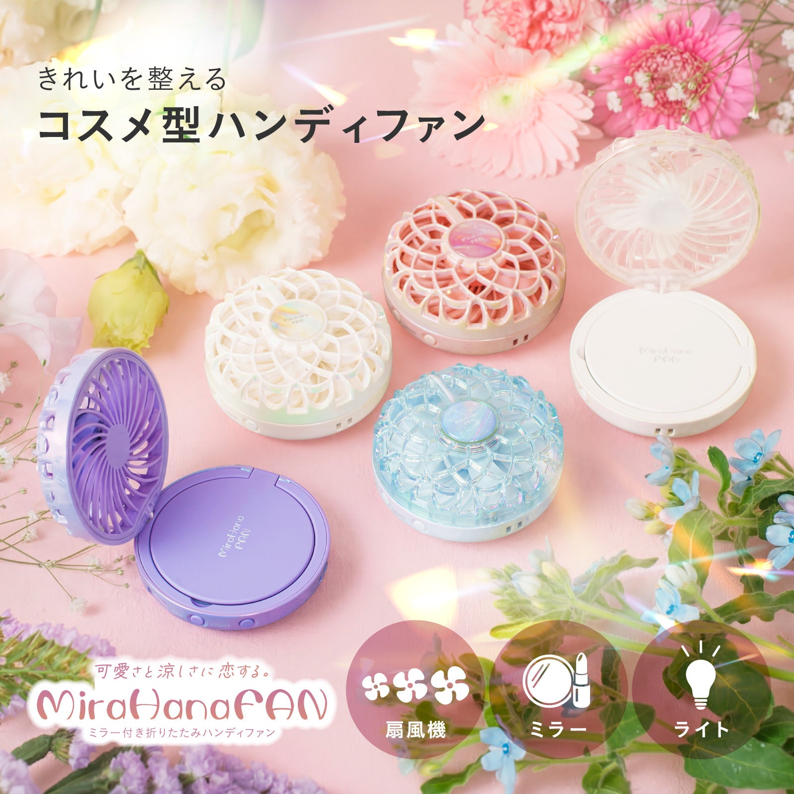 「ミラハナファン」は、そんな季節の変化に着目して生まれたアイテムです。涼しさとお直しのしやすさを、外出先でも支えます。