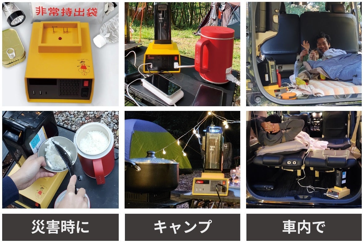 『チャリパワー』は災害時だけでなく、キャンプや車中泊、ピクニックなど、電源がない場所でも大活躍! 小型調理器を併用すれば、お湯を沸かしたり、温かい食事を用意することも可能です。