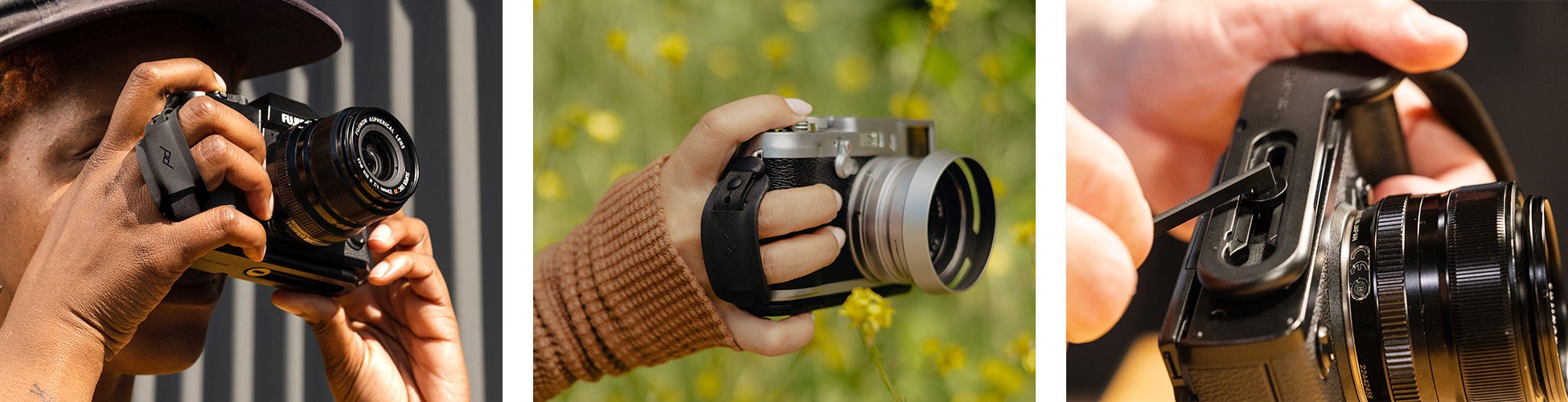 小型から中型のミラーレスカメラ向けに設計された、薄型で機能的なハンドストラップです。