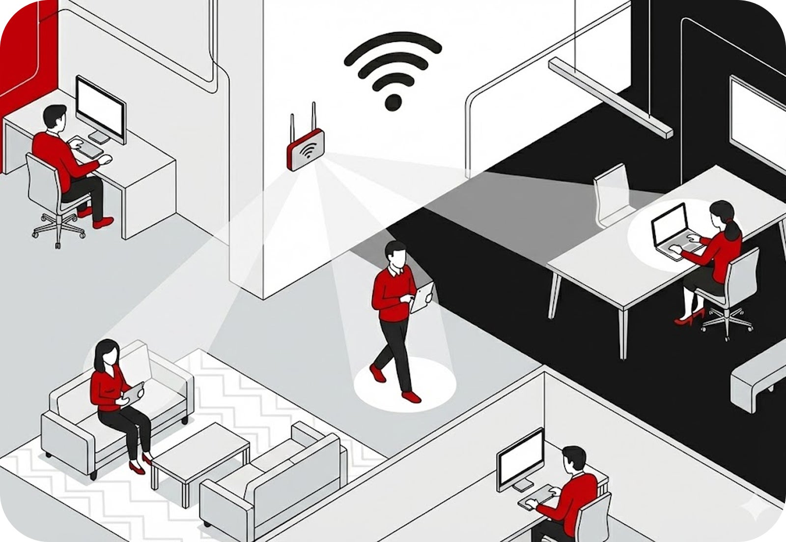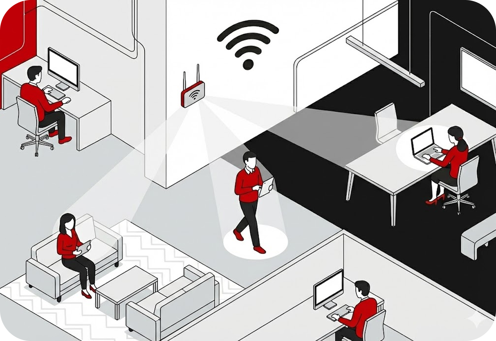 端末の位置や動きを検知し、最適な送受信を維持するスマートアンテナにより、移動中でも接続が途切れにくく、ユーザー体験を損ないません。移動端末が多い環境でも高い安定性を発揮します。