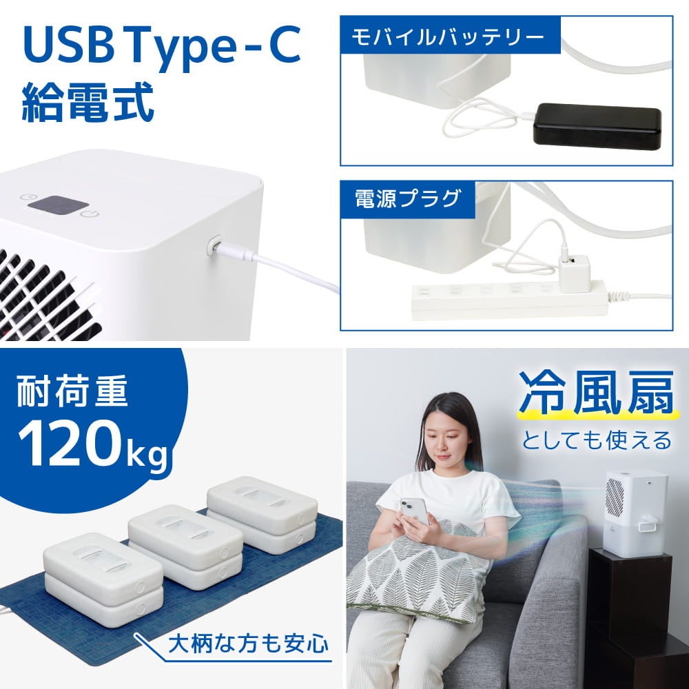 従来の冷感マットは体温でぬるくなりがちでしたが、本製品は本体のファンで水を冷やし続けるため、ひんやり感が持続します。