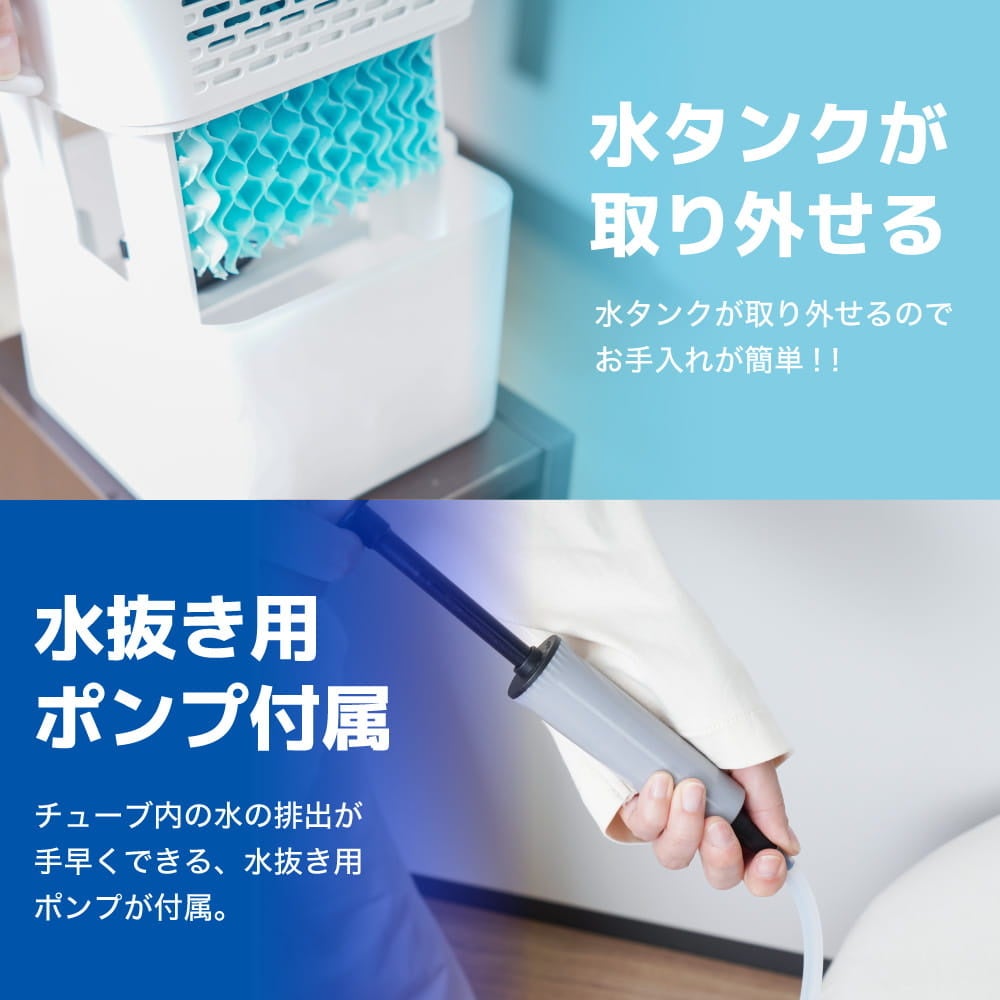 ・セット内容/本体、マット、水循環用ホース、USBケーブル、リモコン(電池別売)、水循環用フィルター、冷風扇アタッチメント、水抜き用ポンプ、日本語取扱説明書