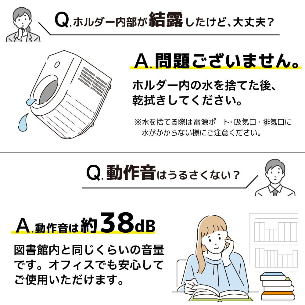 動作音は約38dBと図書館並みの静かさで、オフィスや寝室、ゲーム中など、場所を選ばず使えます。