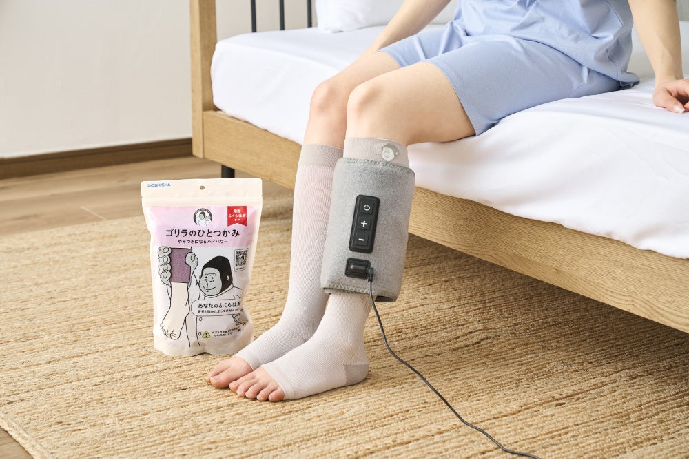 本製品は、当社のふくらはぎケア家電「ゴリラのひとつかみ」(別売り)とのダブル使いでよりスッキリ感を感じていただけます。