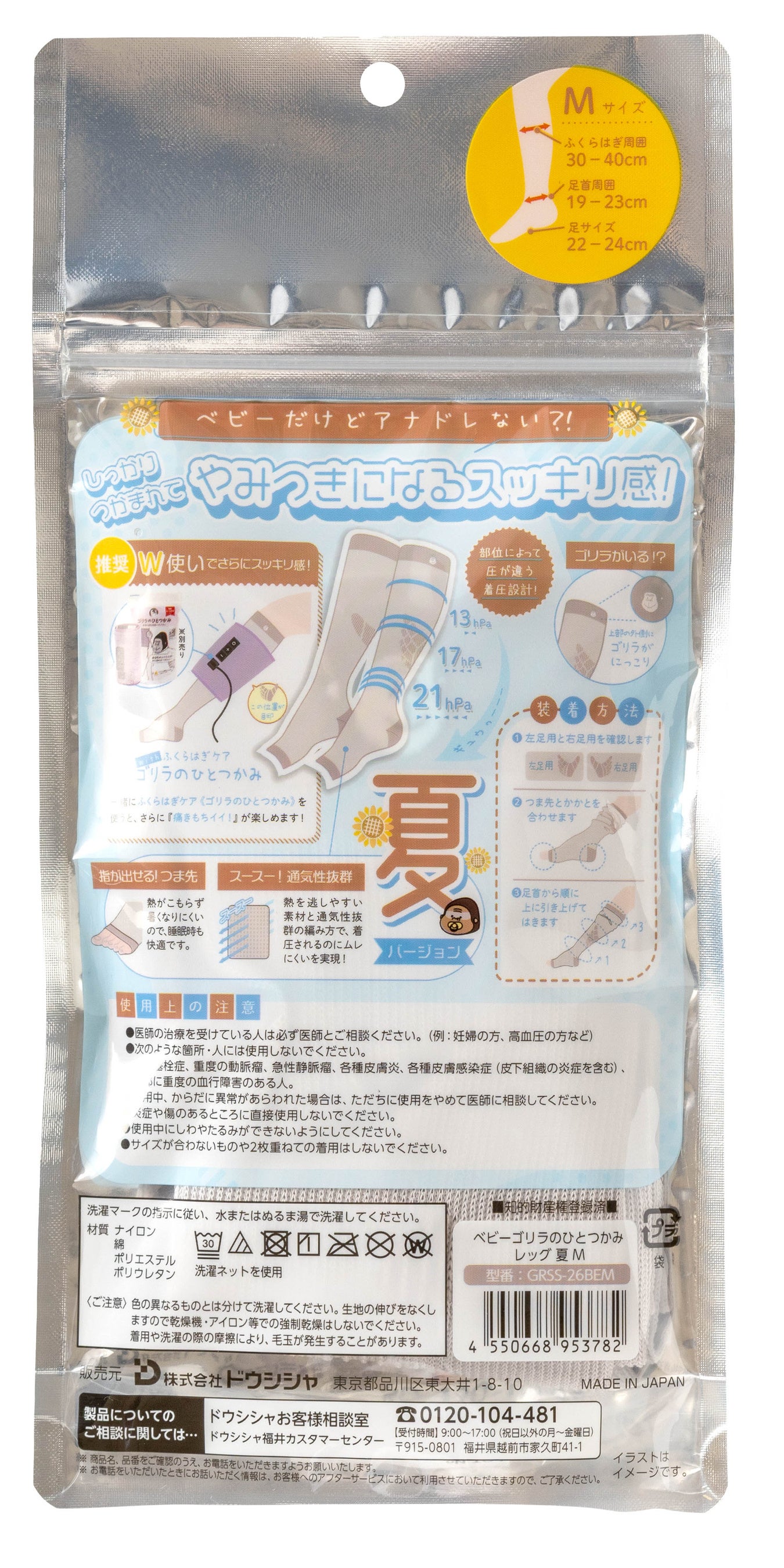 生活関連用品の企画・開発・販売を行う株式会社ドウシシャ(大阪本社:大阪市中央区、代表取締役社長:野村 正幸、以下 ドウシシャ)は、ベビーゴリラに掴まれているような感覚の着圧ソックス「ベビーゴリラのひとつかみ夏」を2026年4月20日(月)よりドウシシャ公式オンラインストア「ドウシシャマルシェ」や、全国の量販店などを通じて販売を開始しました。