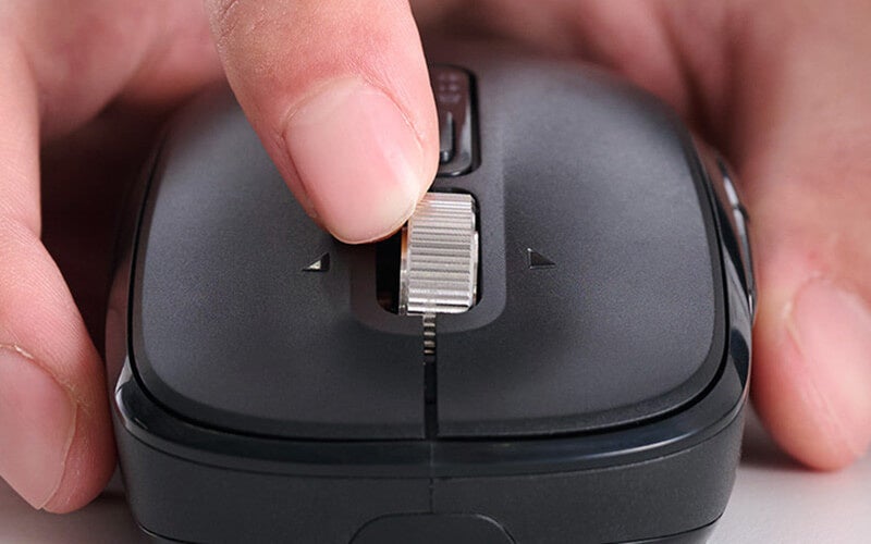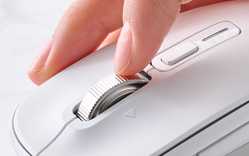 本製品は、ホイールの回転速度に応じて高速スクロールと 1行単位のスクロールを自動で切り替える「スマート高速スクロール」を搭載。縦長のWebサイトや資料の閲覧はもちろん、ホイールを左右に傾けることで横スクロールにも対応し、横に長い表計算ソフトの操作も快適に行えます。さらに、最大3台の機器を接続し、マウス表面のボタンでスムーズに切り替え可能です。