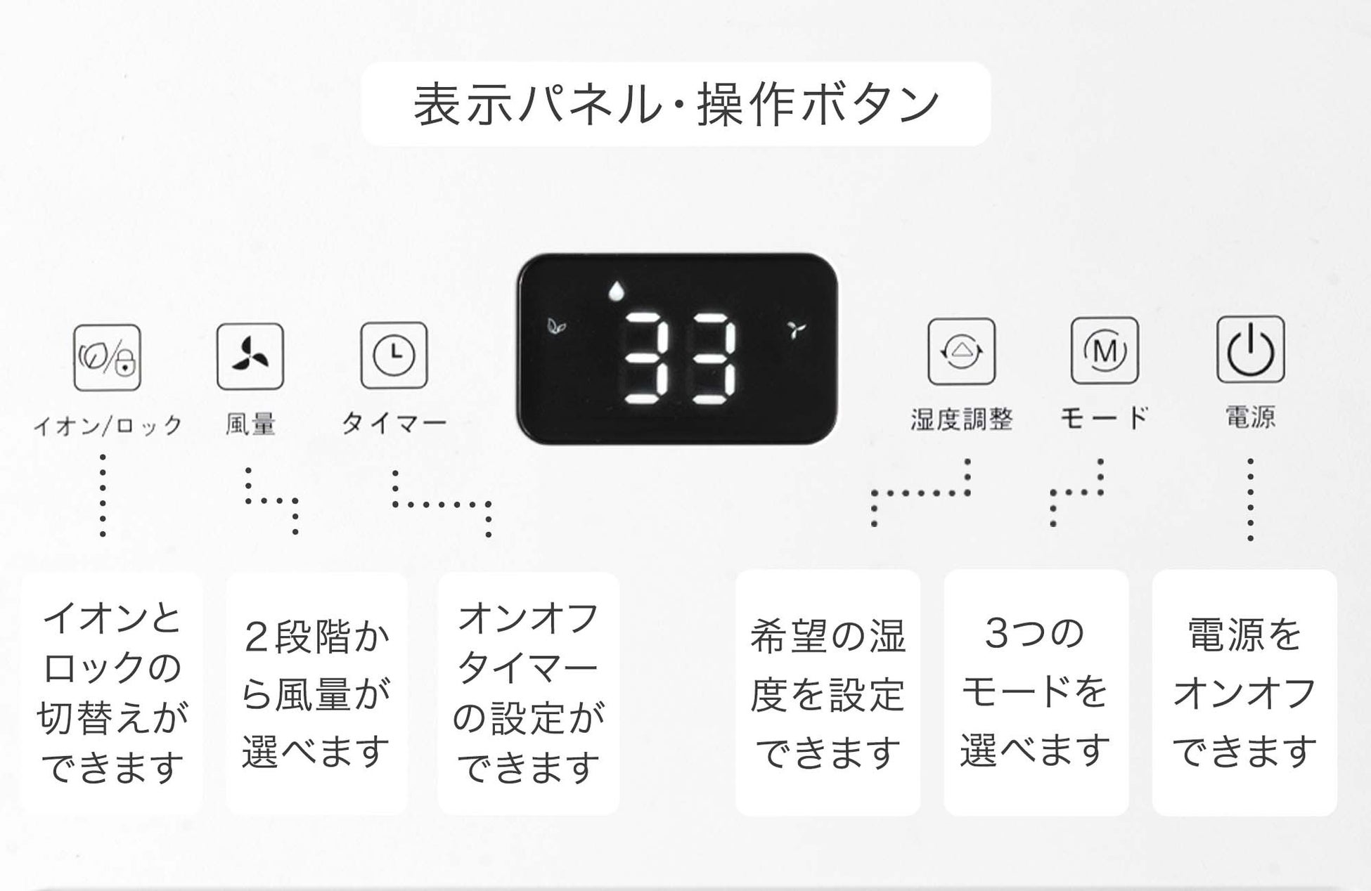 30%~80%の範囲(5%刻み)で設定した湿度を自動でキープします。
