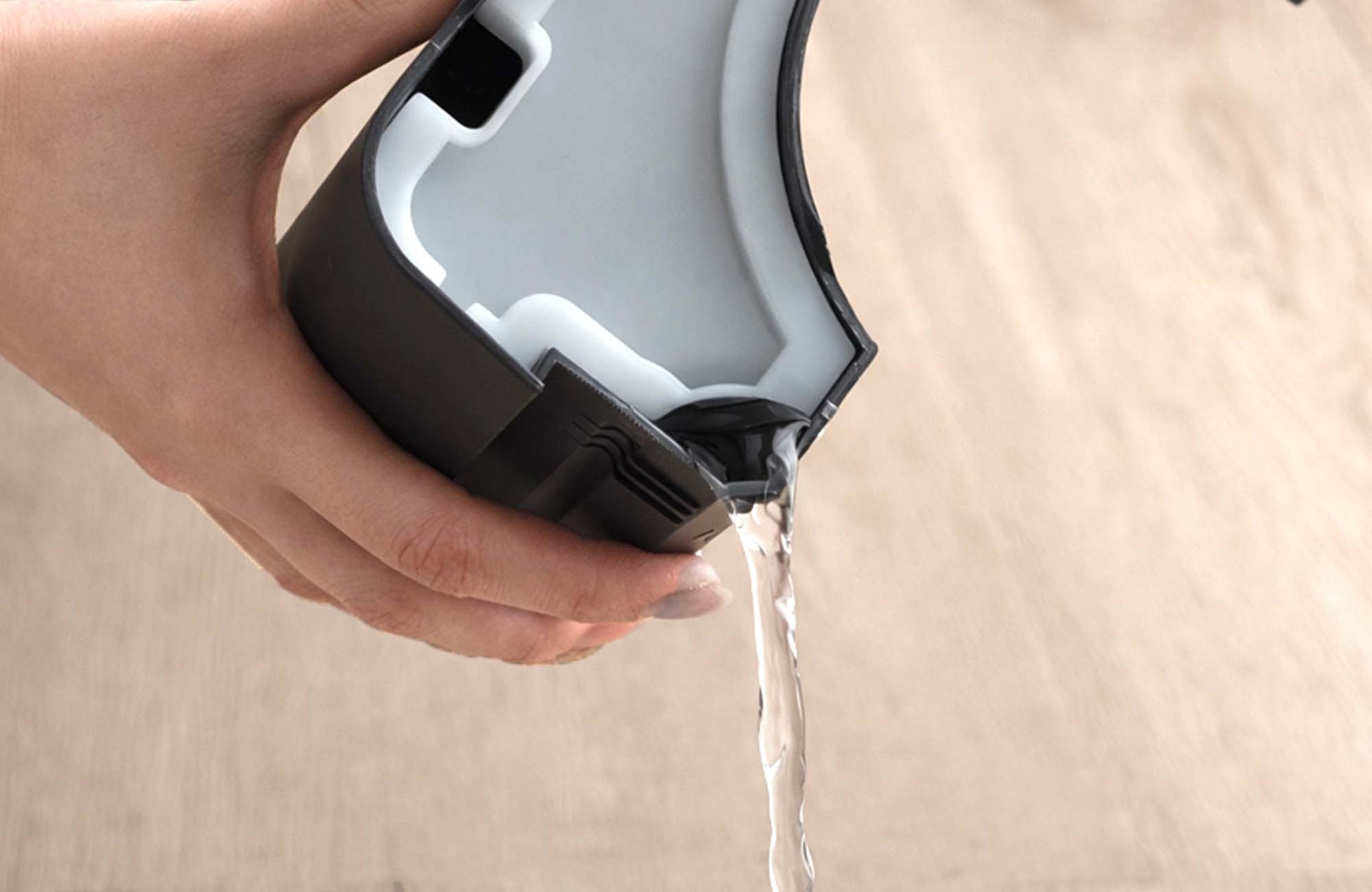 本製品は、手入れや排水のしやすさにもこだわり、容量1.7Lのフタ付きタンクを採用しました。排水時はフタを閉めたまま水を捨てられるため、移動時や排水時の水こぼれを防ぎ、安心してご使用いただけます。