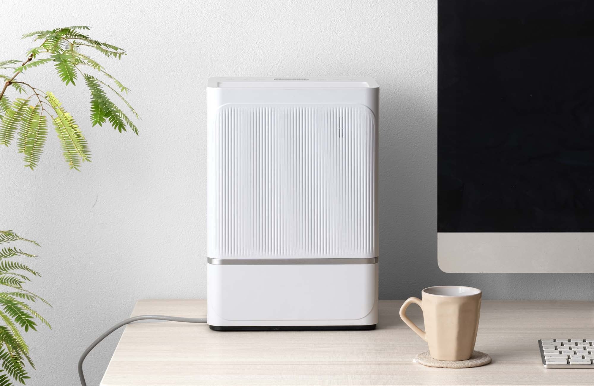 スリムなボディを活かすことで、湿気がこもりやすい洗面所やクローゼット、寝室など、家中のさまざまな場所でも活躍します。さらに、デスク上にも設置でき、作業中のパーソナルな除湿対策にも最適です。